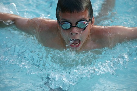 Back in the water say to them, “Take a deep breath, face in the water, and butterfly across the pool.”