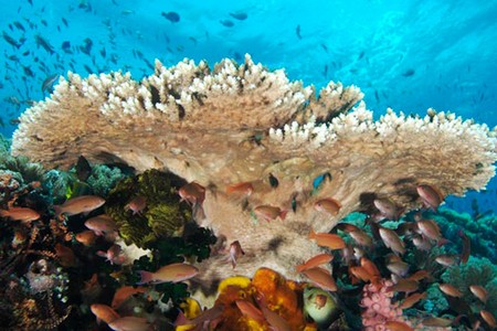 Fire coral, which is a pretty brown colour with a white fringe, is not a true coral. It is common in shallow, well-lit water and can deliver a nasty burning sting. It has ruined many a holiday for anyone unlucky enough to come into contact with it.